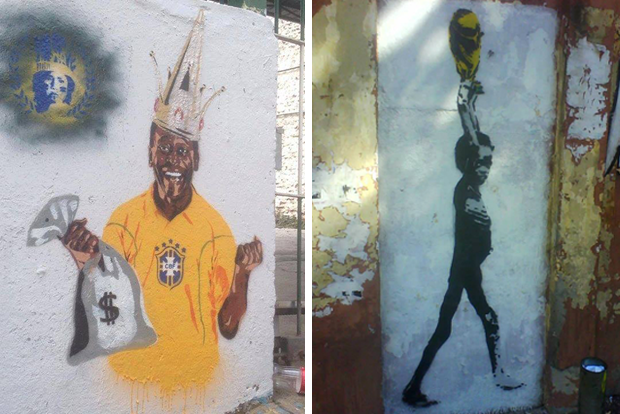 Pouliční umelci, uvedomujúci si závažnosť týchto problémov, pokryli steny v Rio de Janeiro a Sao Paulo obrázkami, ktoré obviňujú riadiace orgány FIFA za využívanie Brazílie a miestnu vládu za zanedbávanie potrieb chudobných. Street art vyjadruje pobúrenie nad majstrovstvami, ktoré zanechajú ich krajinu v nie práve najlepšom stave. Takéto jednorazové športové podujatia sú len akýmsi divadlom ktoré príde do mesta, vyšťaví ho a zanechá síce s novými športovými zariadeniami, ale súčasne aj kolabujúcimi nemocnicami a školami. World Cup stojí Brazíliu neuveriteľných 11 miliárd amerických dolárov. Je preto pochopiteľné rozhorčenie miestnych obyvateľov, ktorých hnevá sledovať, ako sú ich dane míňané na drahé štadióny, zatiaľ čo ľudia žijú v chudobe obklopení drogami a násilím. Zamyslite sa nad tým, je to skutočne veľmi silné posolstvo.
