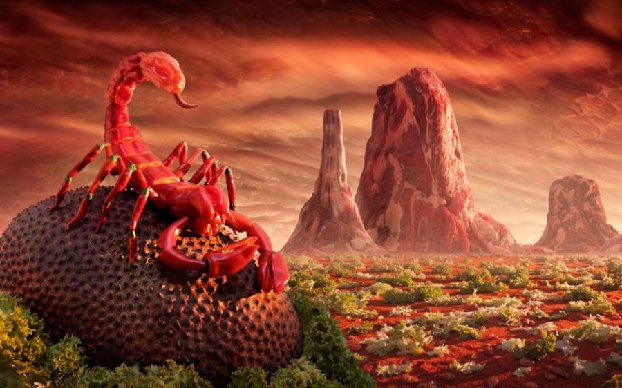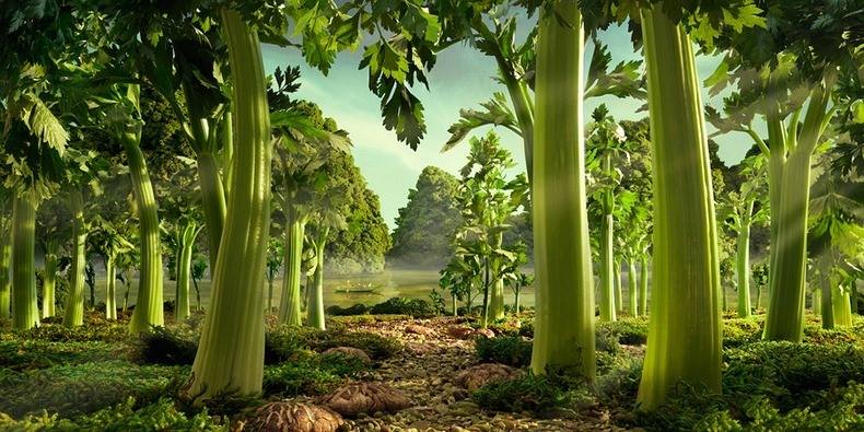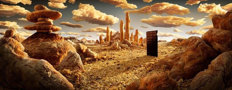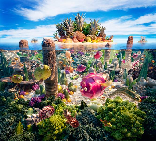 Carl Warner totiž nie je len ďalším fotografom, ktorý sa vie nadchnúť krásou okolo nás. Keď sa pozrieme bližšie zistíme, že jeho strom nie úplne stromom a kameň nie je kameňom. Jeho fotografie sú totiž vytvorené použitím rôznych druhov ovocia, zeleniny, mäsa, syrov, chleba a iných čerstvých potravín.