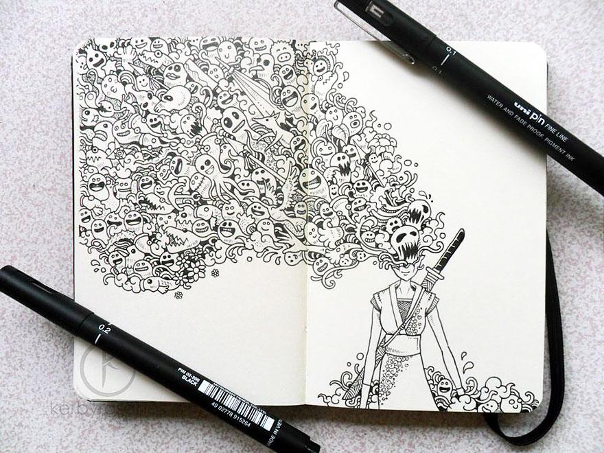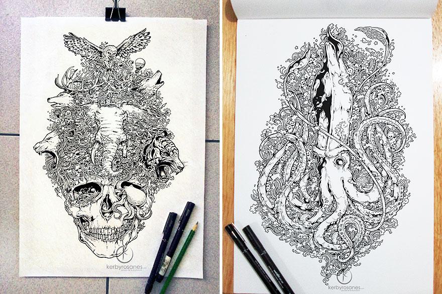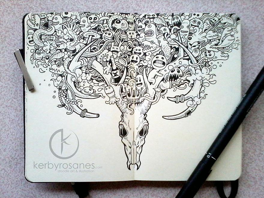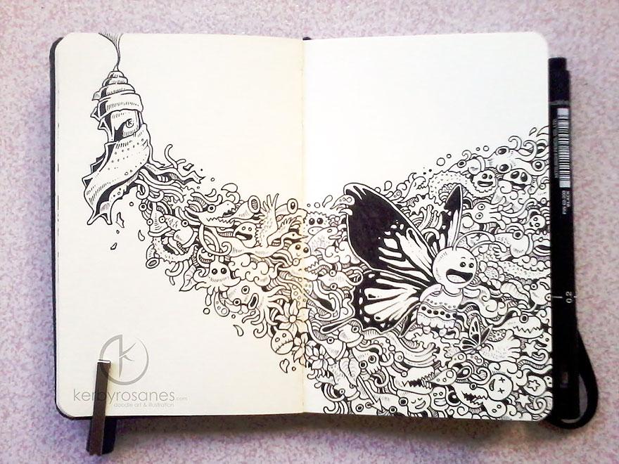 Väčšina z vás si určite v čase voľna alebo nudy v škole či v robote len tak čmára po stranách v zošite či zápisníku. Avšak, filipínsky autor Kerby Rosanes posunul tieto „čmáranice“, ako ich sám nazýva, na trošku vyšší level.