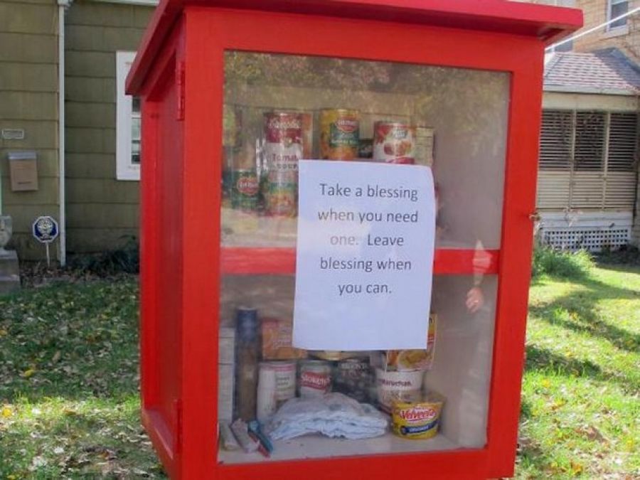 A pritom nejde o žiadny nový koncept. Búdky, v ktorých sa nachádzajú predmety “od ľudí pre ľudí” nájdeme aj v slovenských mestách. Najmä tie, kde ľudia dávajú svoje knihy. Maggie Ballardová pridala k obyčajnej skrinke trochu fantázie, farby a namiesto kníh do nej vložila jedlo, hygienické potreby či podobné veci, ktoré sa využívajú dennodenne. Skrinku vystavila na záhradku pred svoj dom a od jej prvého naplnenia si tento nástroj pomoci žije vlastným životom.