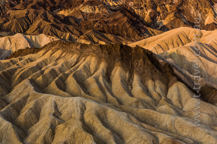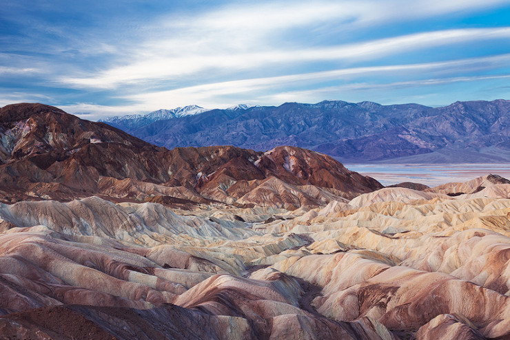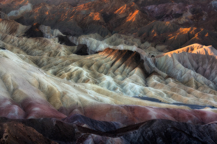 Užite si pohľad na farebnú zvlnenú krajinu plnú roklín a bahenných kopcov nachádzajúcu sa len pár kilometrov od známeho Údolia smrti.
