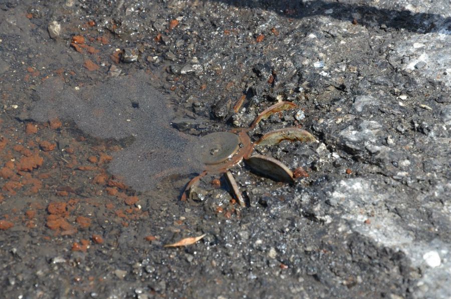 Nevybuchnutá bomba na ceste k Sloviansku.