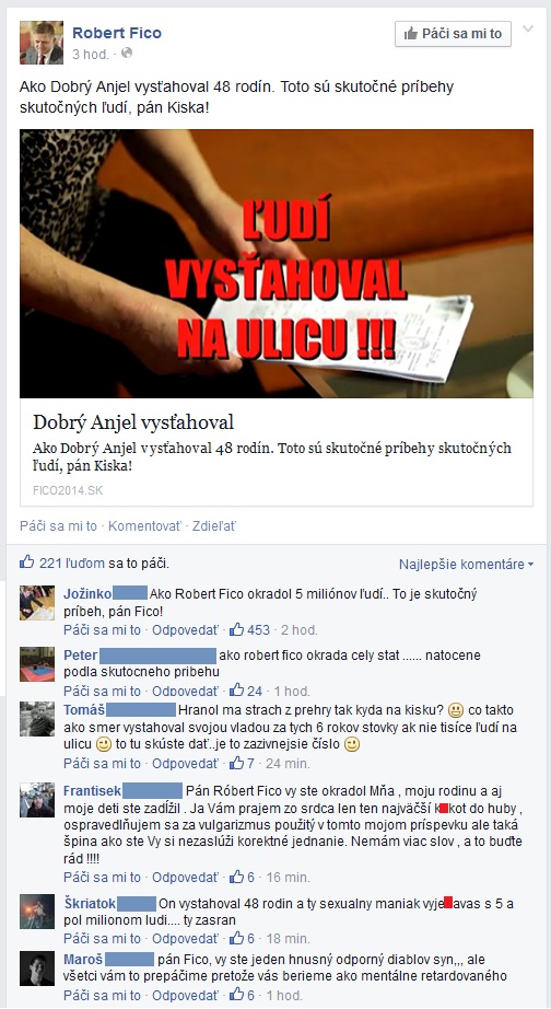 Keď sme sa prehrabávali diskusiami na nástenke profilu Roberta Fica, našli sme toľko negatívneho a tolko vulgárneho, že nám budete musieť odpustiť ak si aj v tomto článku zanadávame. Jednoducho sa to na nás nalepilo!