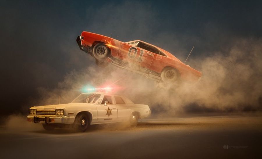 To čo vyzerá ako šikovná robota výrobného tímu pracujúceho na filme je v skutočnosti piplavá práca, ktorá zaberá zopár centimetrov štvorcových. Autá, ktoré vidíte, v skutočnosti nie sú autami, ale len ich hodnovernými napodobeninami v podobe malých modelov. Do tejto série sa Felix rozhodol stvárniť policajné naháňačky “miniatúr”. Zvírený prach pri práci teda vidieť nebolo a rovnako tak za ňou nestál tím ľudí. A napriek tomu by ste zrejme bez tohto článku nikdy nepovedali, že na obrázkoch nevidíte skutočnú “naháňačku”.