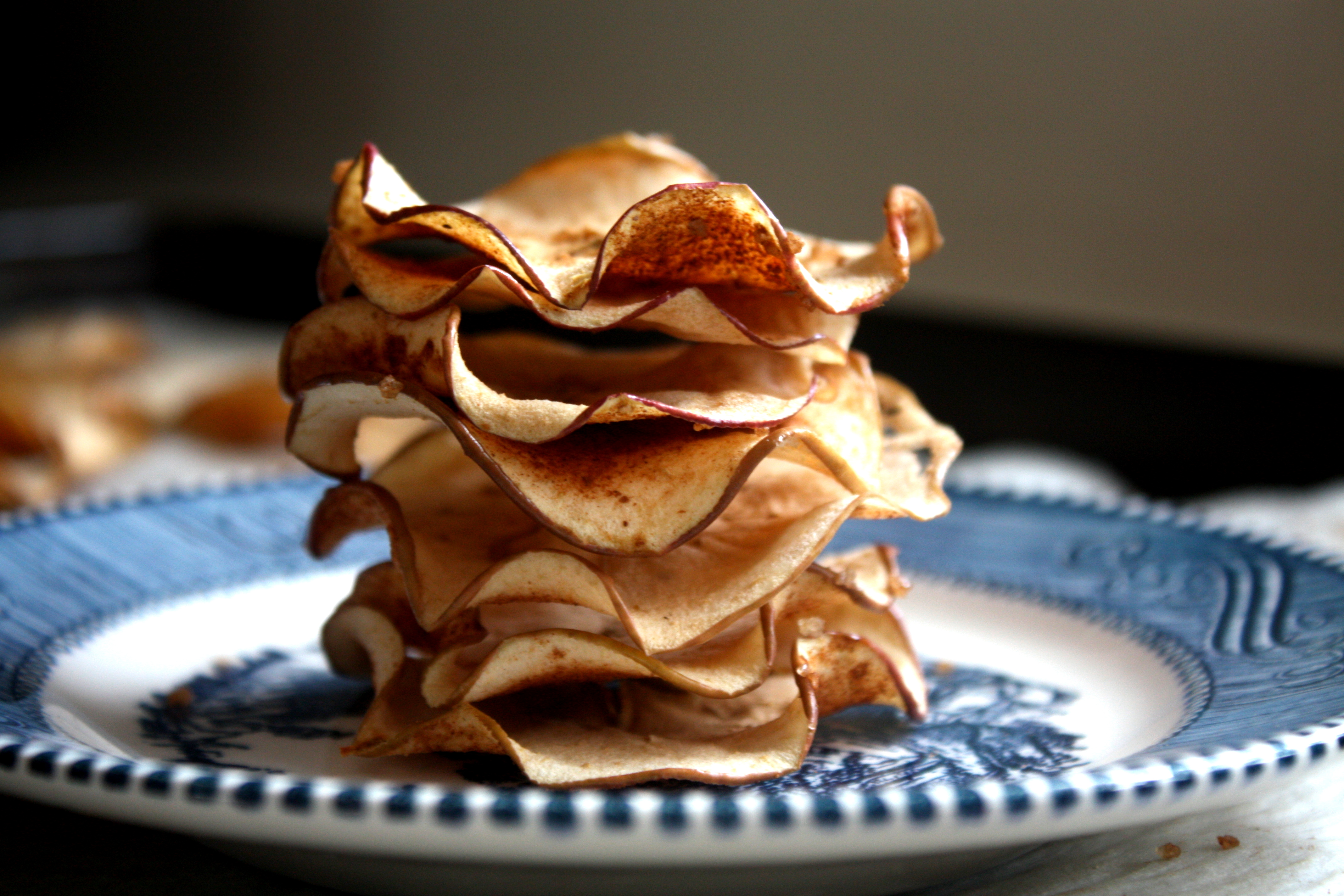 Pečené jablkové chipsy - ak máte chuť na niečo sladké, rozhodne musíte vyskúšať chrumkavé pečené jablkové chipsy, ktoré v kombinácii so škoricou a muškátovým orieškom vyčaria vynikajúci snack a váš mlsný jazýček si určite príde na svoje. V miske si zmiešajte škoricu, muškátový oriešok, cukor a štipku soli. Jablká narezané na tenučké plátky si po jednej vrstve uložte na plech vystlaný papierom na pečenie, posypte zmesou a dajte piecť do rúry vyhriatej na 200°C. Po polhodine otočte a pečte ďalších 30-60 minút, záleží od hrúbky jabĺčok.
