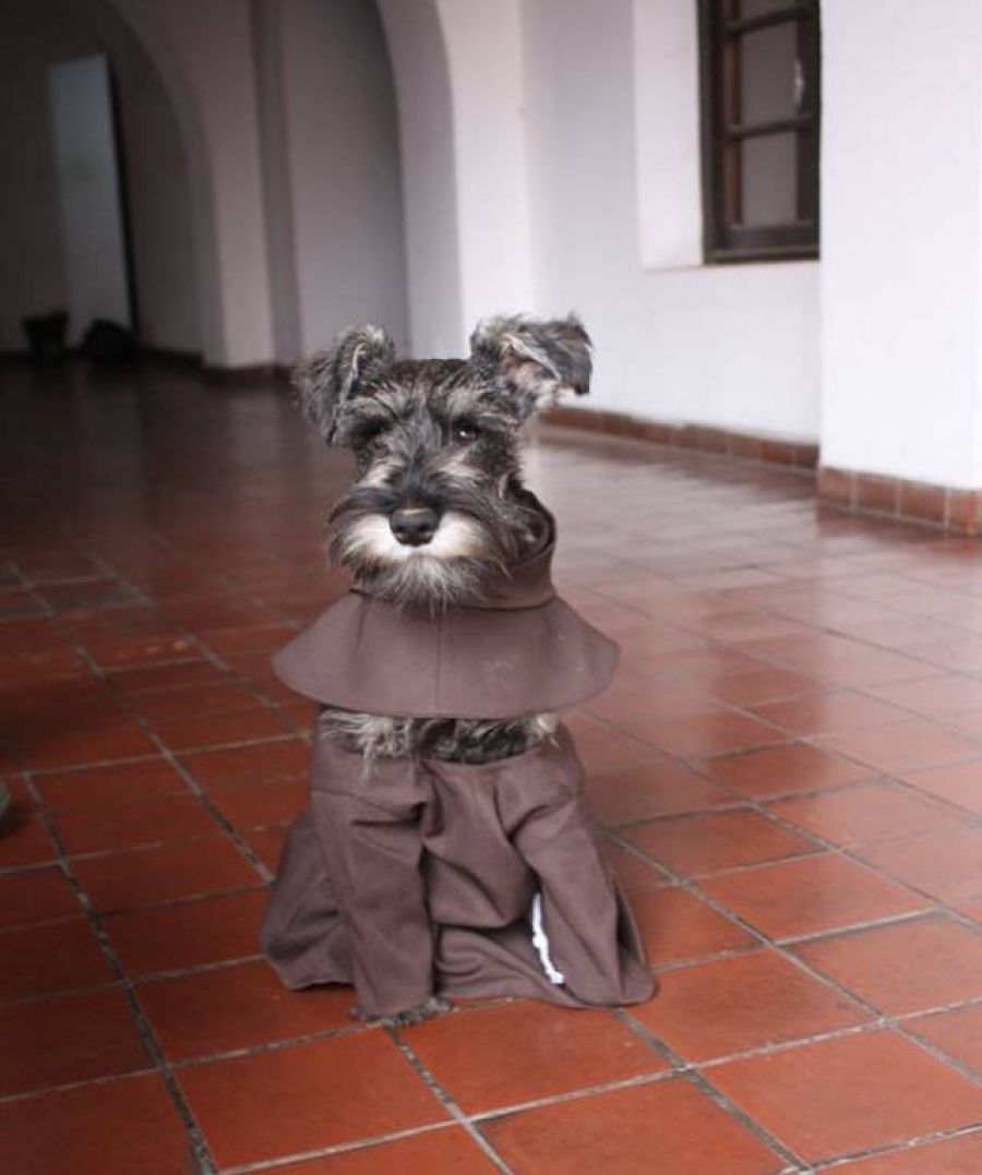 Do kláštora sa dostala tak, že si ho mnísi adoptovali z miestneho útulku. A nielen to, bol pokrstený a dostal vlastné sväté meno “Friar Bigotón”, vo voľnom preklade “Brat Fúz”. A to je logické, keďže ide o psíka známeho aj ako fúzač.