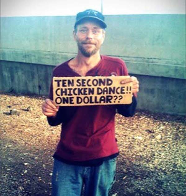 Každý reaguje na žobranie bezdomovcov rôzne. Keby sme stretávali takýchto kreatívnych bezdomovcov, asi by sme si v peňaženke rýchlejšie našli nejaký ten zvyšný centík.