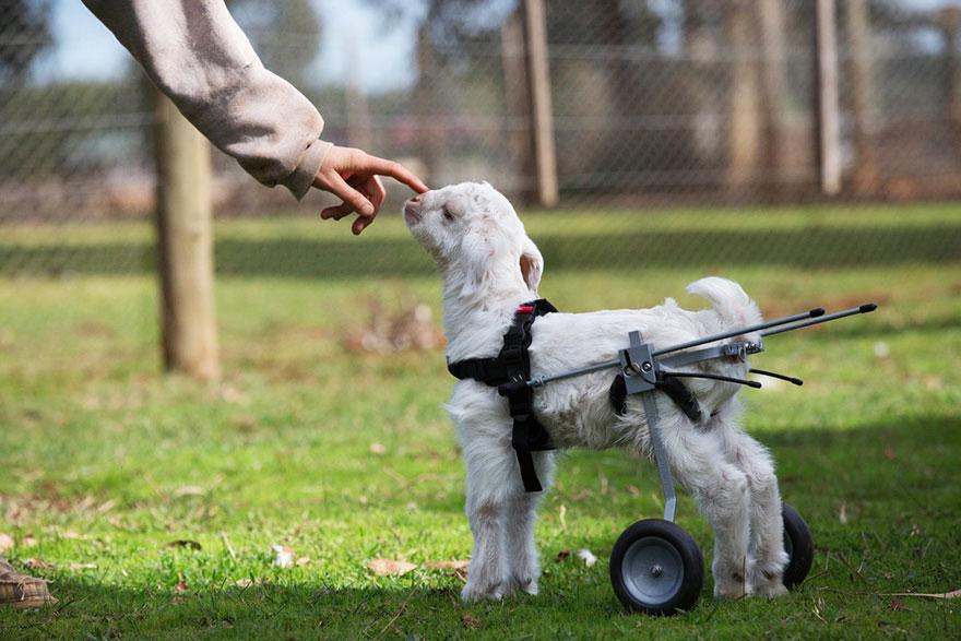 Malé biele kozliatko Frostie sa narodilo so zvláštnou chorobou, ktorá mu bráni používať zadné nohy. Keď ho pracovníci z Edgar´s Mission, austrálskej neziskovej organizácie zachránili, Frostie bol napadnutý všami, trpel infekciami a bol dehydrovaný. Vďaka malému vozíčku, ktorý pred tým patril Leonovi Trotskemu (malému prasiatku), sa teraz pokúša o svoje prvé kroky. Kozliatko chodí síce trošku váhavo, opatrne kladie nožičky na zem, ale pracovníci neziskovej organizácie dúfajú, že takýmto spôsobom mu pomôžu k plnohodnotnému životu a raz bude môcť chodiť. Vo videu môžeme vidieť, ako neisto príde k jednému z pracovníkov, aby mu očuchal tvár. Organizácia teraz hľadá sponzorov a finančné zdroje na budovane útočiska pre ďalšie zvieratá. "Je naozaj dôležité, aby sme Frostie udržiavali v pohybe. Ten mu pomôže vypláchnuť z tela toxíny". Príbeh Frostie je smutný, pretože má ešte len niekoľko týždňov, no títo dobrovoľníci mu pomohli, ako sa len dalo a onedlho sa určite bude môcť hrať so svojimi zvieracími kamarátmi.