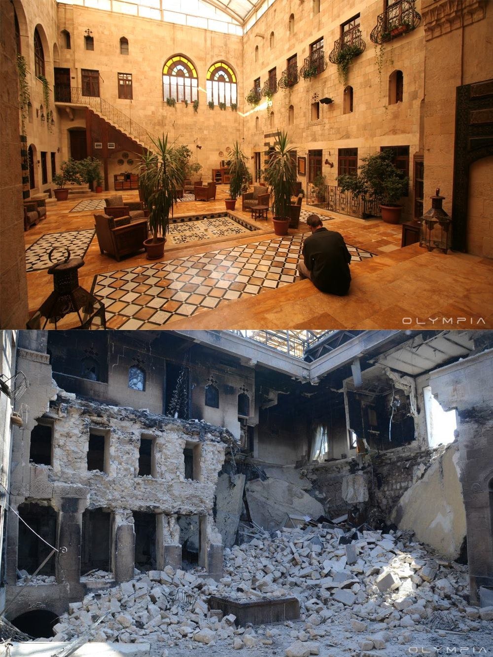 Občianska vojna v Sýrii zasiahla krajinu naplno. Fotky, ktoré nedávno zverejnila reštaurácia Olympia Restaurant vháňajú slzy do očí. 124 obrázkov ukazuje mesto Aleppo, ktoré bolo v roku 1986 uznané ako súčasť svetového dedičstva UNESCO. Kostoly, staré tržnice, miesta, kde sa ľudia stretávali, domy aj bytovky. To všetko ostalo napospas vojne, ktorá napáchala mnoho škôd - aj na historických budovách.