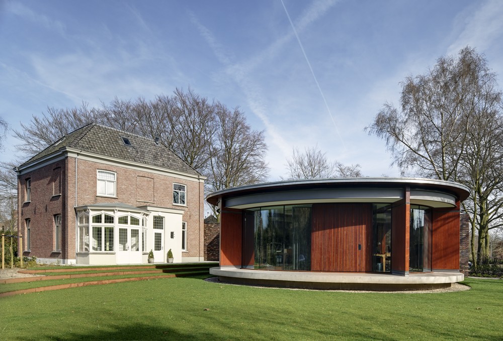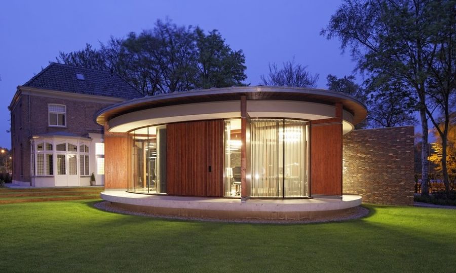 Pracoviská, kde prebiehajú všetky rokovania, sa nachádzajú v okrúhlom pavilóne uprostred záhrady. Keďže pavilón je celý presklený, ponúka krásny výhľad na vilu a do záhrady, zatiaľ čo veľký previs poskytuje dostatok tieňa počas slnečných dní. Tento pavilón je doslova srdcom spoločnosti. Tehlová chodba ho spája so starou vilou a vďaka svojmu tvaru poskytuje potrebný pokoj a súkromie na tomto frekventovanom mieste.