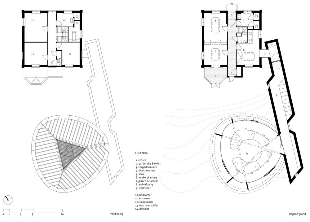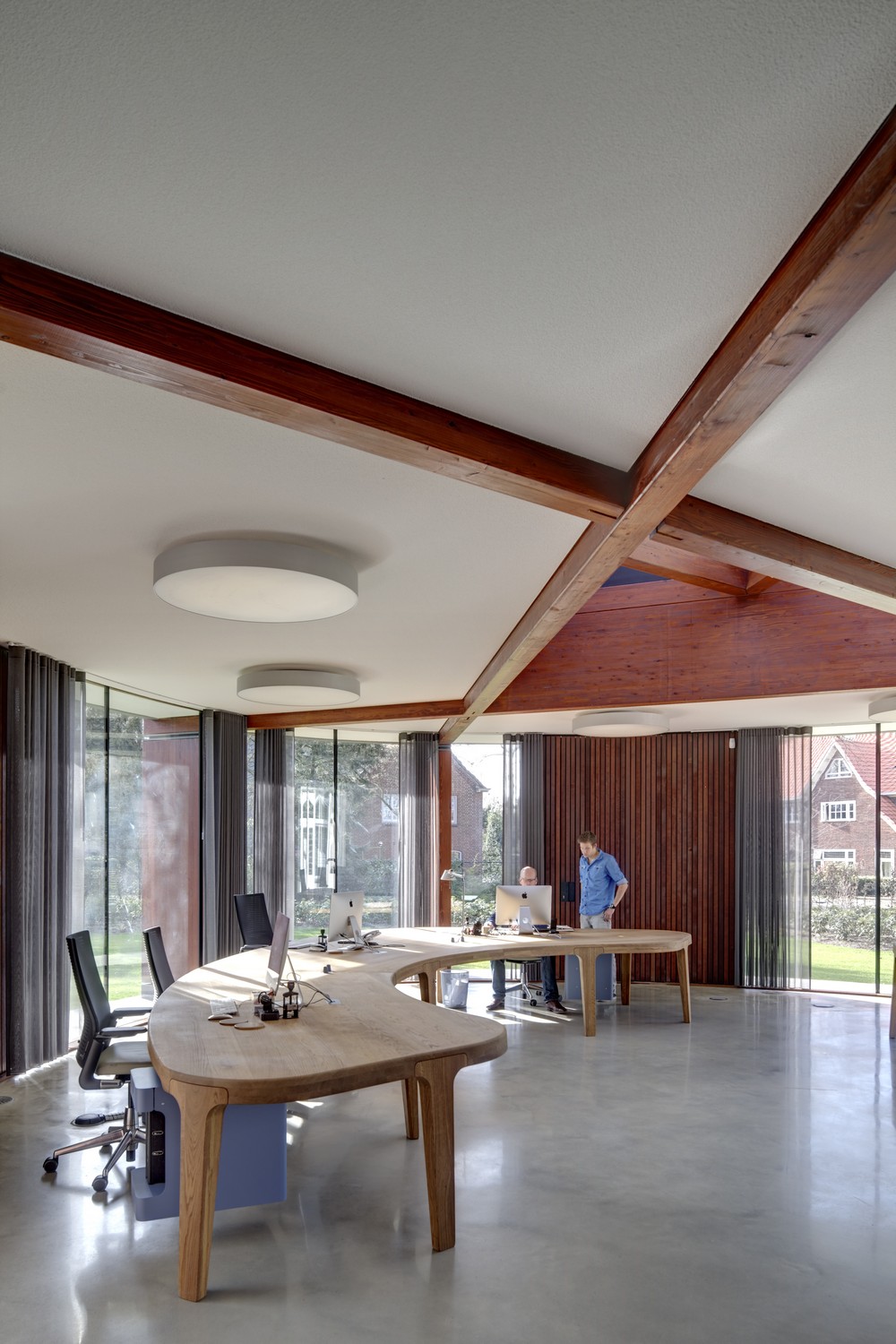 Na prvom poschodí vily, zrekonštruovanej HILBERINKBOSCH architektmi, sa nachádza konferenčná miestnosť, kancelárie a jedáleň, zatiaľ čo druhé poschodie ponúka dostatok priestoru pre pobyt zahraničných hostí, s ktorými Sonder rieši medzinárodné obchody. Nové schodisko poskytuje interiéru požadovanú majestátnosť a eleganciu.