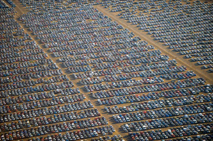 Toto je jeden obrovský problém, o ktorom zrejme málokto z nás vedel. Google Earth objavil enormne rozľahlé plochy pokryté miliónmi novovyrobených áut z celého sveta, ktoré nečaká nič iné, iba zošrotovanie. Tieto miesta najskôr pripomínajú obyčajný autobazár, no nie je tomu tak. Od autobazárov sa líšia svojou "nekonečnou" rozlohou a tým, že napriek tomu, že vyšli priamo od predajcu, tieto autá nebudú nikdy predané.