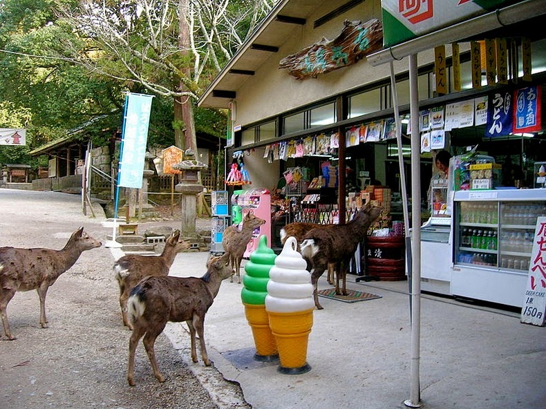 V uliciach sú postavené automaty, v ktorých si ľudia môžu zakúpiť krekry na kŕmenie zvierat a srnčeky sa za ten čas naučili aspoň vďačnosti. Keď ich nakŕmite, pekne sa vám poklonia.