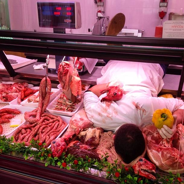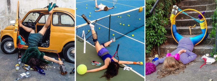 Fotograf Sandro Giordano vytvoril sériu naozaj vydarených fotografií ľudí, ktorí vyzerajú, akoby práve zaryli nosom medzi všetky svoje haraburdy. Fotografie s názvom "IN EXTREMIS - bodies with no regret" sú zvečnením vtipných pádov do bláznivých, farebných kompozícií. Nie sú to však len hlúpe obrázky, ktoré vám bezpochyby vyčaria úsmev na tvári, skrýva sa za nimi dôležitá správa o materializme dnešnej doby. Kolekcia vznikla na základe vlastnej skúsenosti, keď Sandrovi vlani v lete malá nehoda na bicykli spôsobila 30% stratu funkcií v jeho pravej ruke. Rovnako jeho priateľ si zlomil nohu, keď sa snažil zachrániť svoj smartphone pred pádom do vody. Obaja bezhlavo riskovali svoje zdravie, len aby zachránili veci, ktoré však nie sú cennejšie ako ľudské zdravie, či dokonca život.