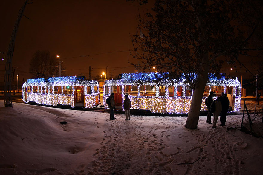 Hoci tieto fotografie nie sú fotografie vesmírneho plavidla, alebo plavidla v čase, predsa sa trochu v čase presunieme. Obrázky totiž vznikli fotografovaním električiek v Budapešti počas zimy, keď boli odeté do 30-tisíc LED svetielok.