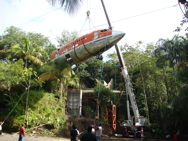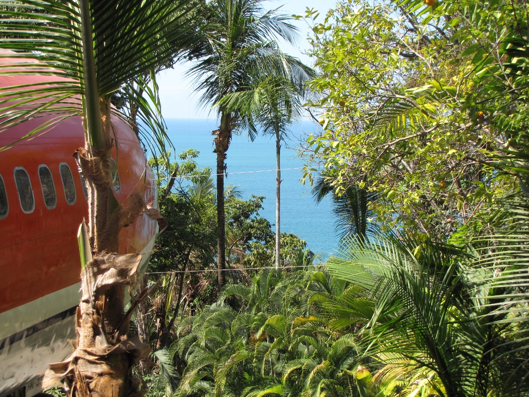 Tento jedinečný hotel sa nachádza na Kostarike. Jeho základ tvorí starý vrak lietadla Boeing 727 z roku 1965, ktorý je umiestnený na špeciálnom podstavci vo výške 15 metrov. Vďaka tejto výške ponúka svojim hosťom výhľad na malebný oceán a na miestnu faunu a flóru, ktorú v sebe ukrýva okolitá džungla.