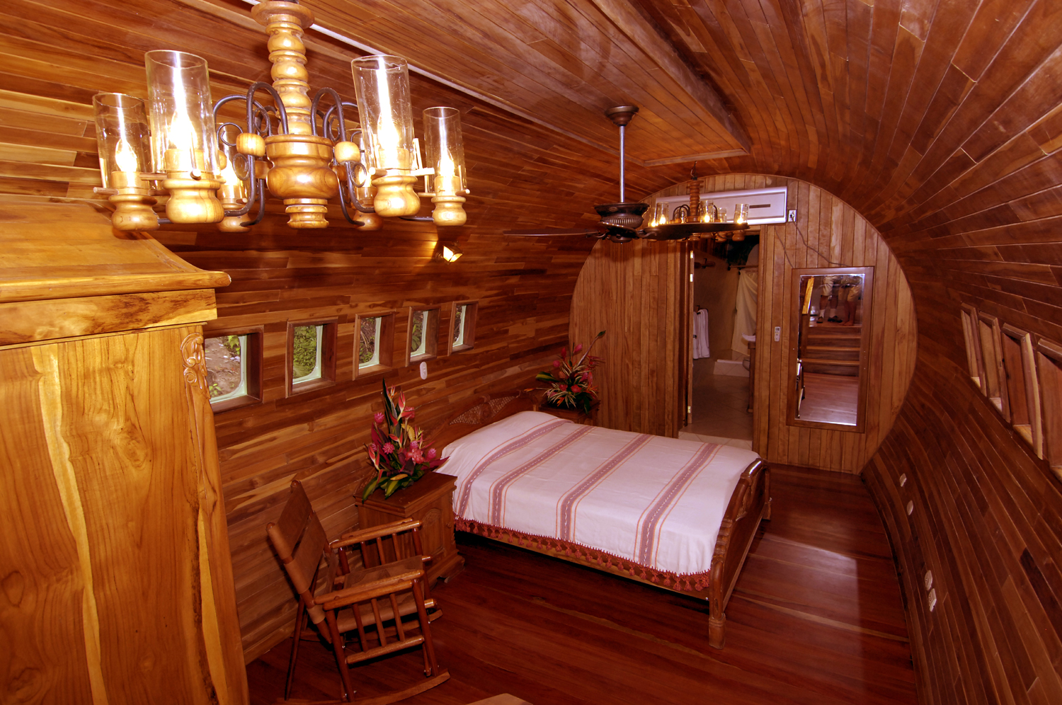 Interiér lietadla je zostavený zo zdobeného a ručne vyrezávaného tíkového dreva a ponúka dve klimatizované izby s queen - size posteľou, každá s vlastnou kúpeľňou, TV s veľkoplošnou obrazovkou, s kuchynským a jedálenským kútom a predovšetkým, s krásnou slnečnou terasou s výhľadom na more a okolité zelené záhrady.