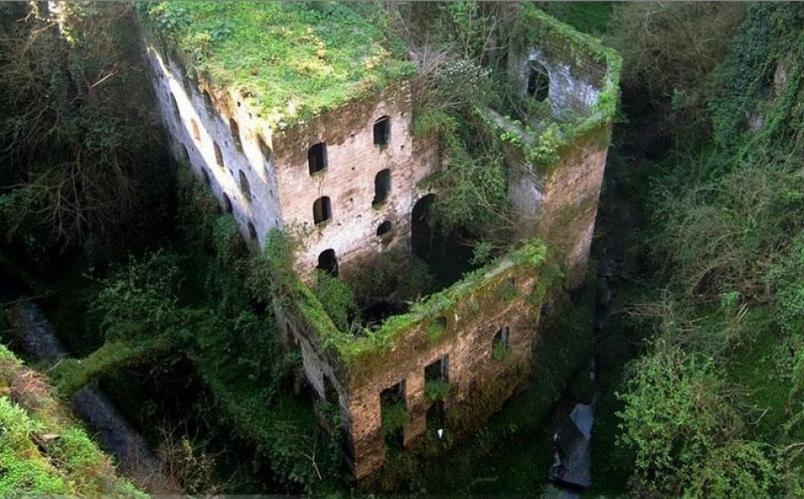 Opustený mlyn, Taliansko - mlyn v údolí mlynov v Sorrente bol opustený v roku 1866. Kedysi sa tu mlela pšenica rovnako, ako v celom okolí. Mlyn bol izolovaný od mora výstavbou Tasso Square, čo zvýšilo vlhkosť v oblasti a spôsobilo jej opustenie.
