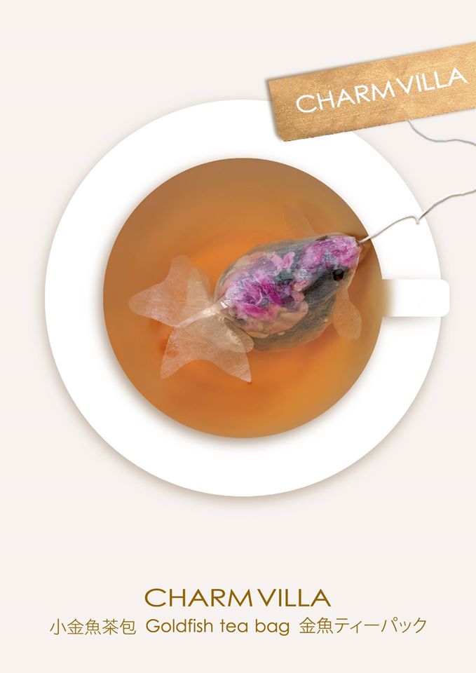 Firma z Taiwanu Charm Villa prišla na trh s jedinečným dizajnom čajového vrecúška. Vrecúško čaju vyzerá ako zlatá rybka, ktorá vo vode úplne ožije.